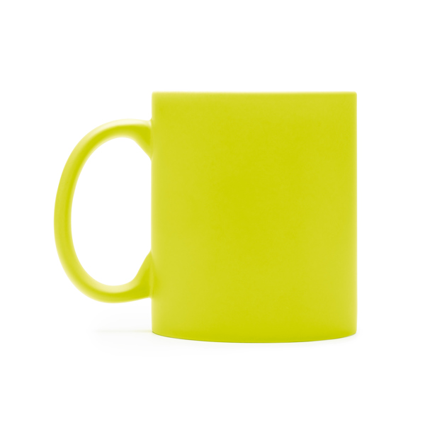 Gelb matte Keramikbecher mit weißer Innenseite. Ideal geeignet für die Lasergravur.